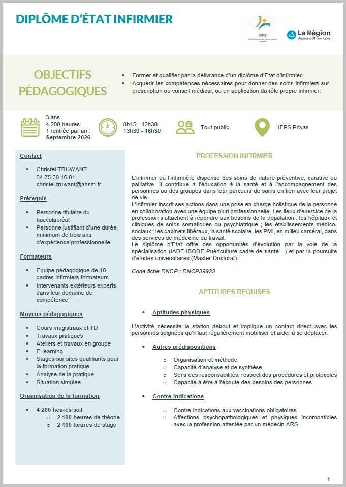 L'IFPS Privas est un établissement de l'Association Hospitalière Sainte-Marie